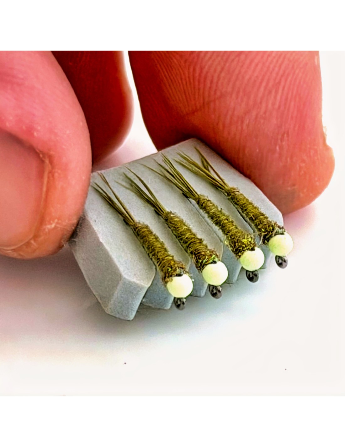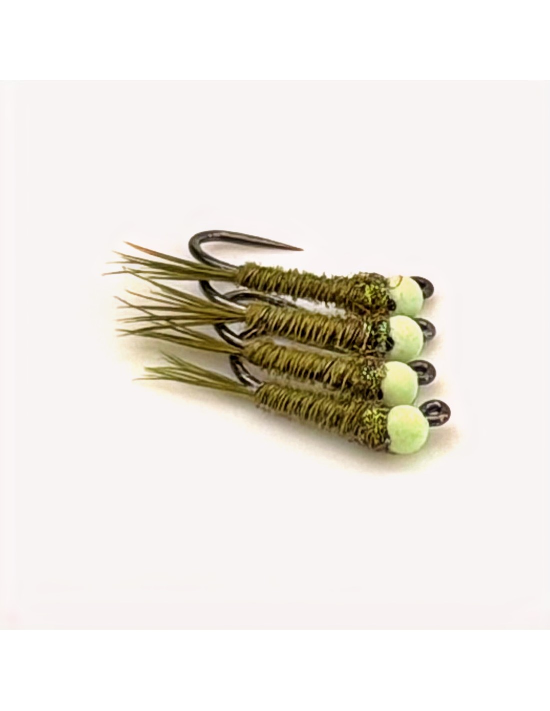 Corps faisan olive et bille tungstène fendue 2 mm blanc phosphorescent.