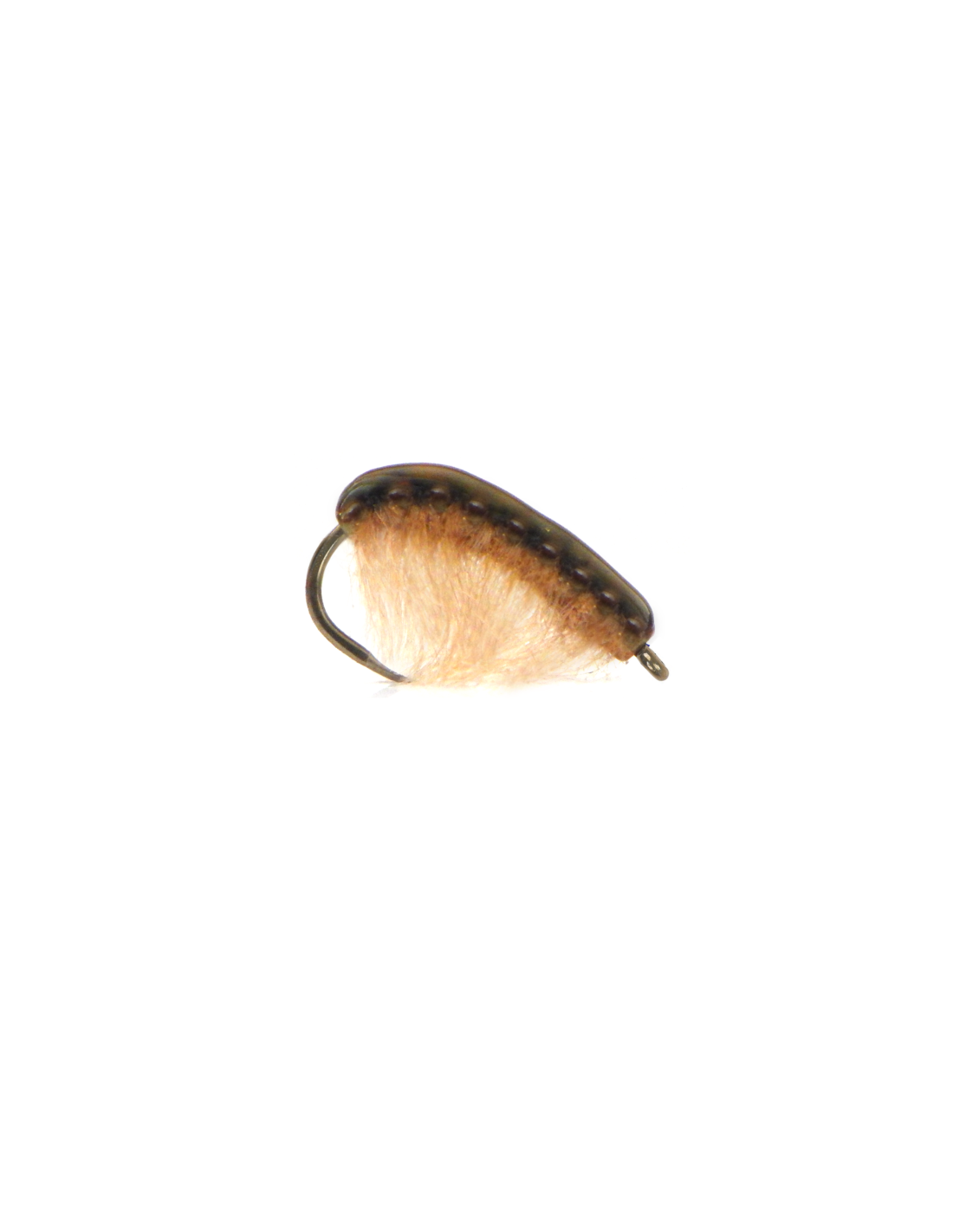 Gammarus with a translucent body made with a dubbing seam between glass beads. Varnished shell.