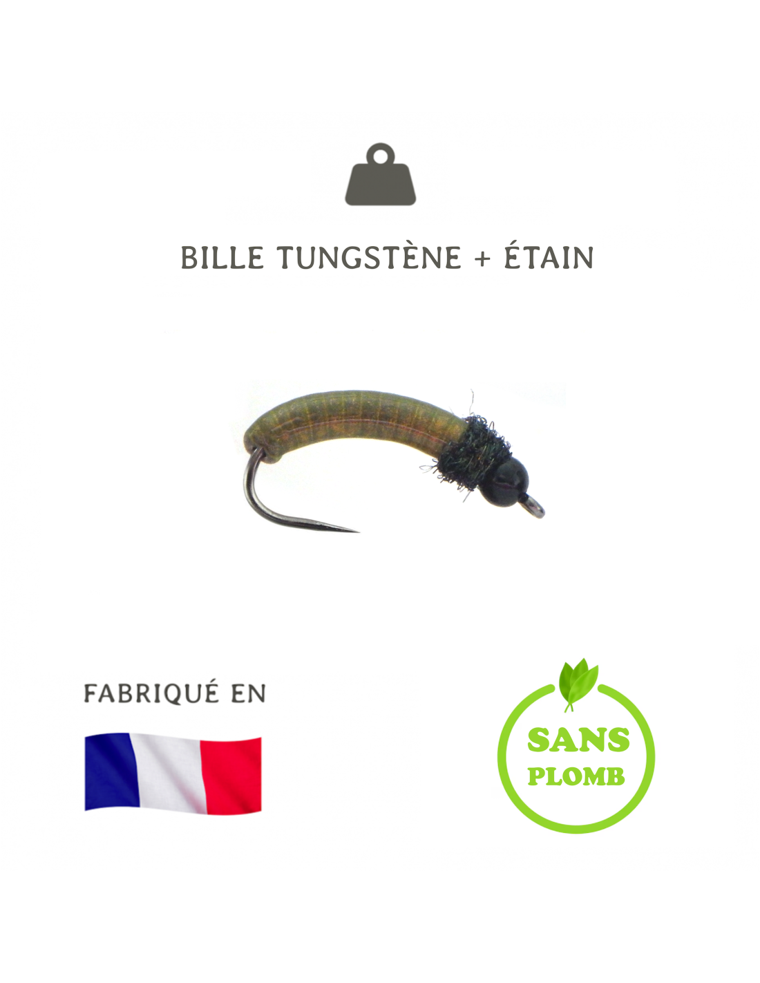 Its weighting (medium for its range) is made with a 3 mm diameter tungsten bead and varnished tin wire wraps
