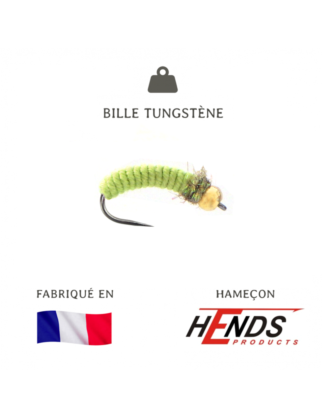Its weighting (light for its range) is made with a 3 mm diameter tungsten bead and wraps of super-strong cotton thread