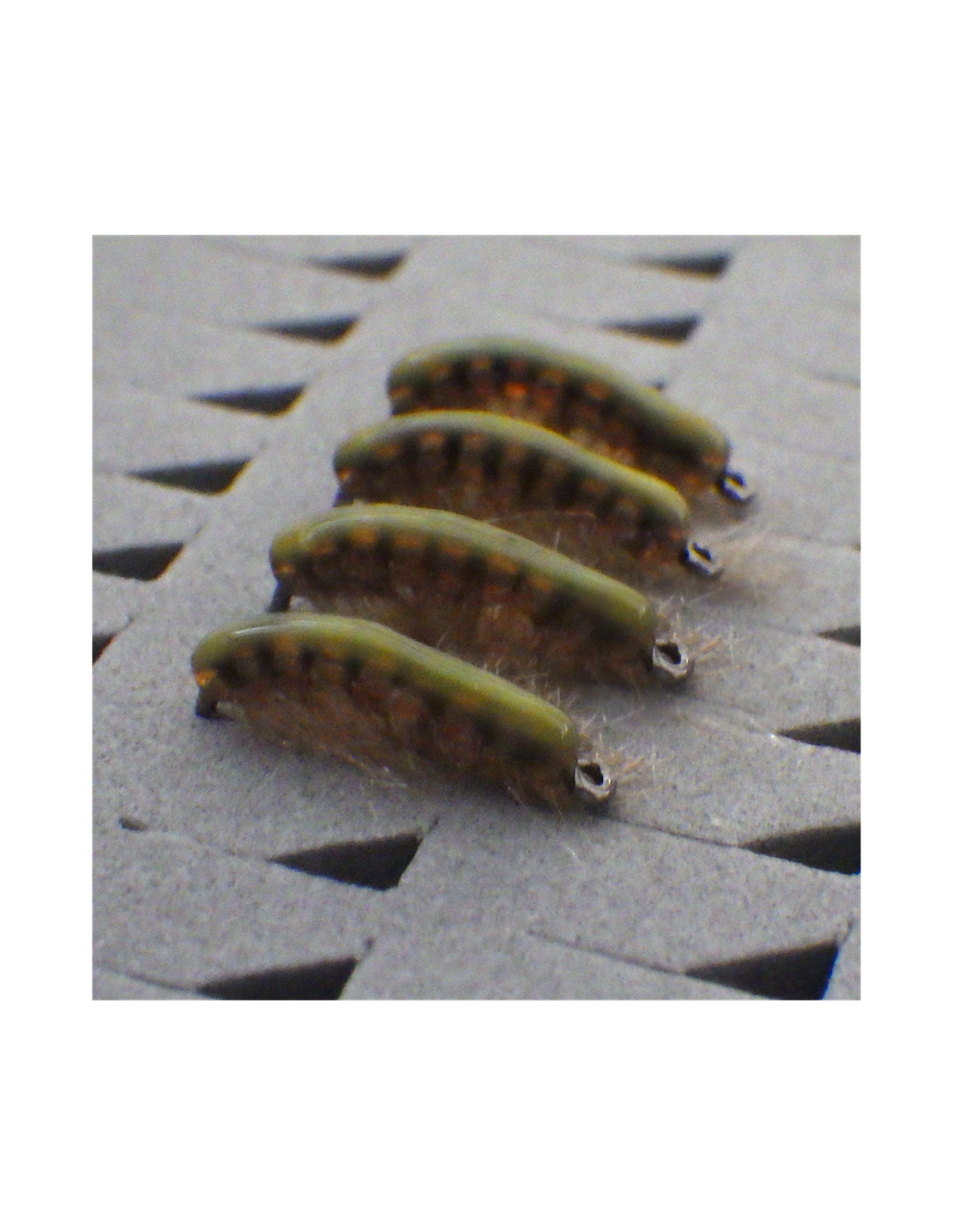 Gammarus with a translucent body made with a dubbing seam between glass beads. Varnished shell.