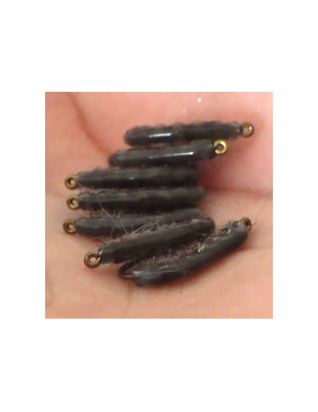 Gammarus with a translucent body made with a dubbing seam between glass beads. Varnished shell.